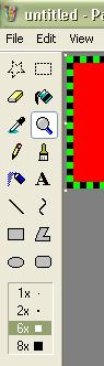 14) Save this image somewhere as 1 in GIF format. 15) Now go back to the border image in MS Paint. Use the eyedropper and eraser tool to switch the colors of the border. You can paste the image in step 3 into the document, then follow steps 5 through 7, but NOTE: instead of making the limegreen spaces the first color you chose, you must make them the second color. The black spaces must be the first color you chose. 16) Copy and paste the image over your blinkie in Photoshop. Save it as 2.GIF. 17) Now open up Unlead Gif Animator (or any other animation program) and choose Animation Wizard. 18) Make the width 150 and the height 20.